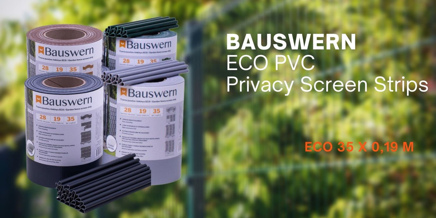 Buy Bauswern ECO Privacy Screen Strips 35 x 0,19 m (450 g/m²) and get 28 clips for attaching screen strips.